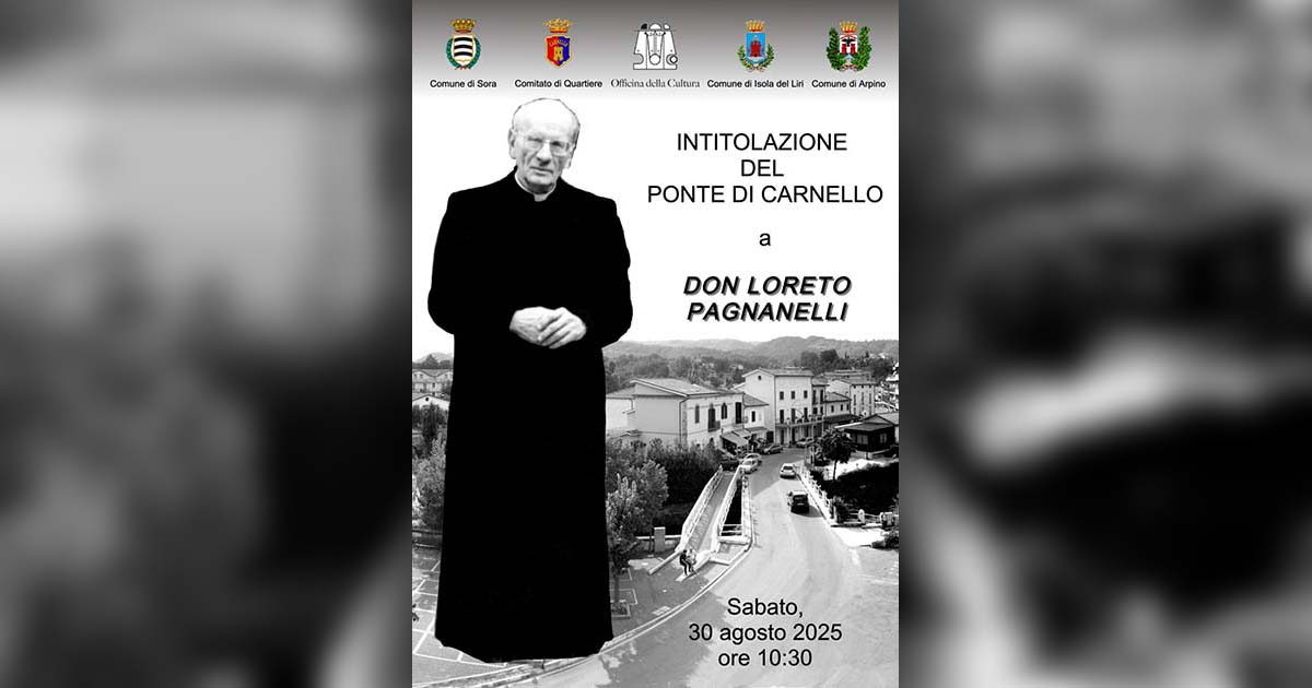 All’evento prenderanno parte le istituzioni dei Comuni di Sora, Isola del Liri e Arpino, realtà unite dallo stesso territorio e dal ponte che le collega. La giornata sarà dedicata alla memoria del sacerdote e al simbolo di coesione rappresentato dall’opera viaria.