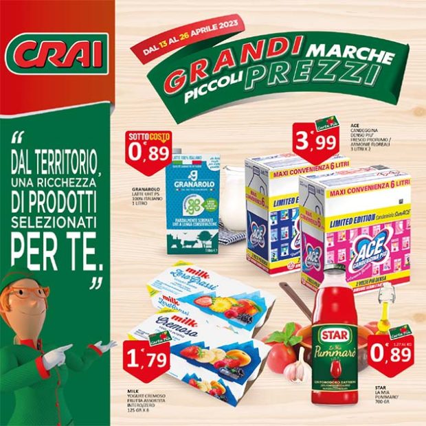 CRAI presenta la nuova promo valida fino al 26 Aprile 2023: “Grandi marche, piccoli prezzi”. Numerose opportunità per riempire il carrello della spesa a fronte di una cifra sostenibile.