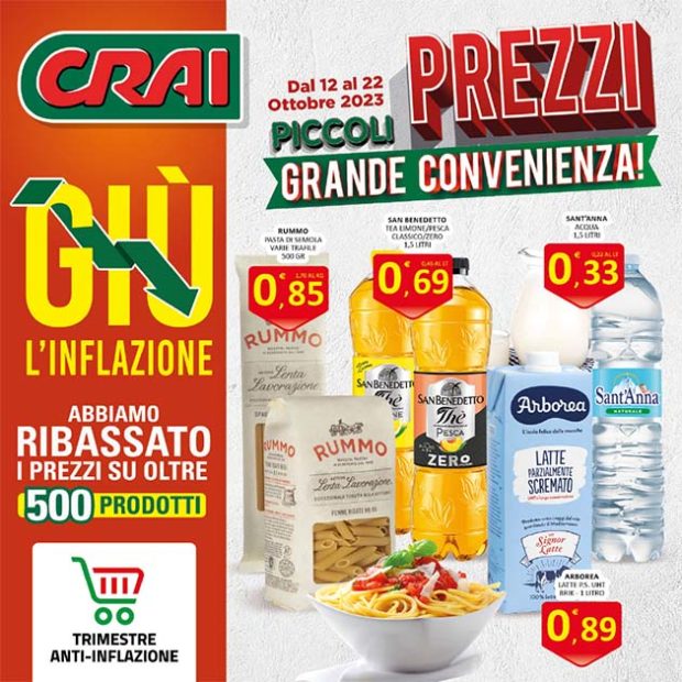 CRAI presenta: piccoli prezzi, grande convenienza. Dal 12 al 22 Ottobre 2023, oltre 500 prodotti a prezzi ribassati per combattere l’inflazione senza rinunciare alla qualità.