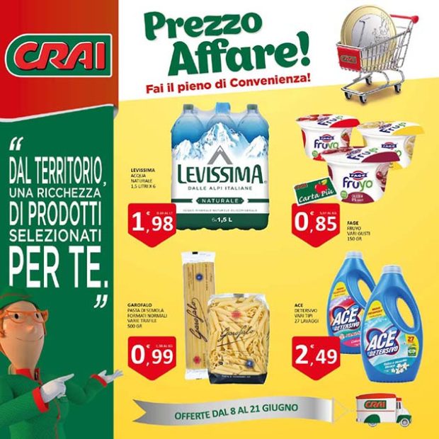 CRAI presenta: “Prezzo Affare, fai il pieno di convenienza!“. Dal 08 al 21 Giugno 2023 numerose opportunità per riempire il carrello della spesa a fronte di una cifra sostenibile.