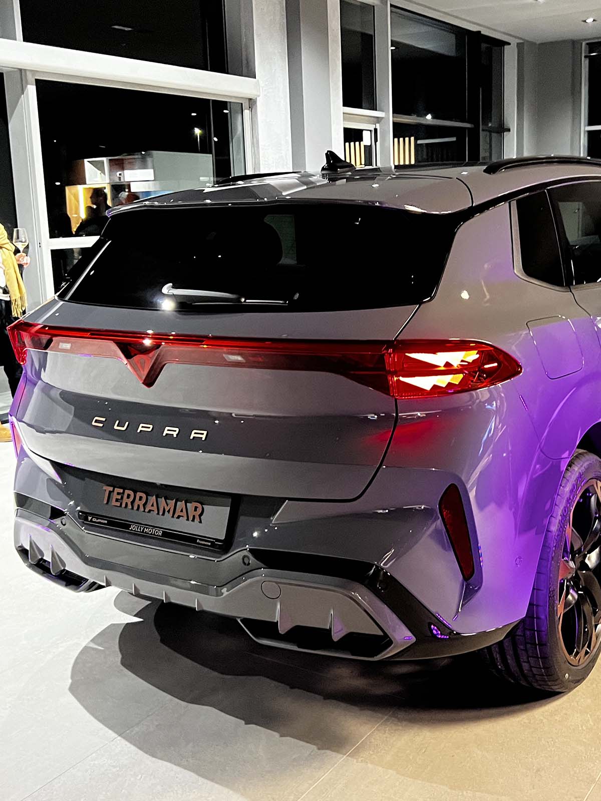Terramar è dotato di un sistema e-HYBRID di ultima generazione, con una coppia massima di 400 Nm. Esteticamente, il veicolo si distingue per un frontale ispirato al muso di uno squalo, cerchi in lega disponibili in diametri da 18” a 20” e proporzioni atletiche evidenziate da un cofano lungo. Dettagli come il logo CUPRA illuminato e il diffusore posteriore contribuiscono a sottolinearne la presenza imponente e il carattere dinamico.