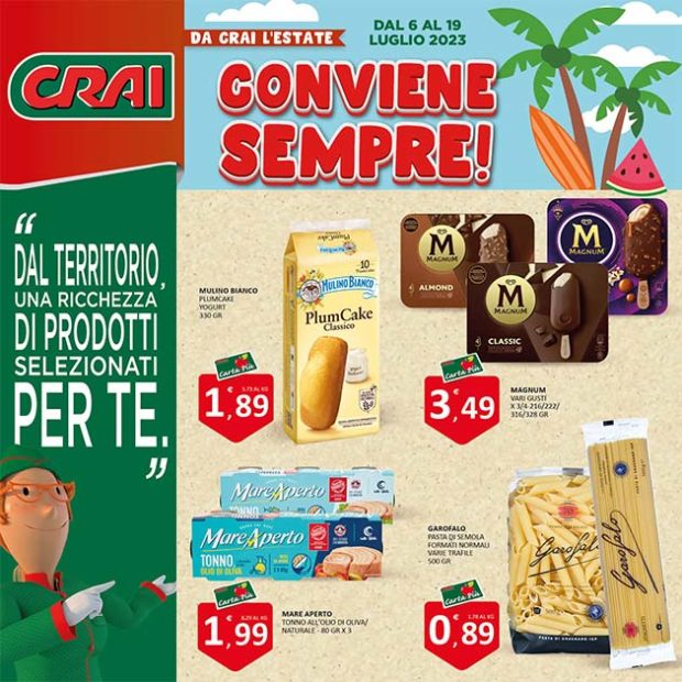 Da CRAI l’Estate conviene sempre! Dal 06 al 19 Luglio 2023 numerose opportunità per riempire il carrello della spesa a fronte di una cifra sostenibile.