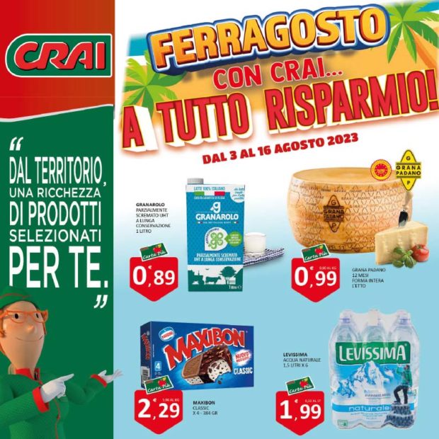Ferragosto con CRAI… a tutto risparmio. Dal 03 al 16 Agosto 2023, come sempre, numerose opportunità per riempire il carrello della spesa a fronte di una cifra sostenibile.
