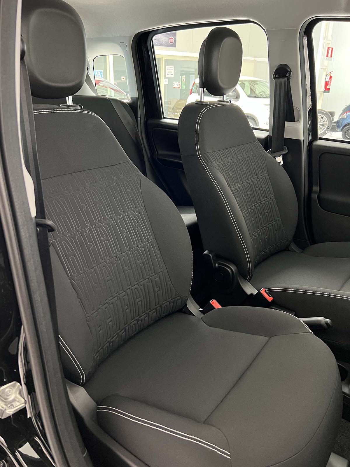 Chi desidera un look più deciso può scegliere Pandina Cross, che si distingue per l’assetto rialzato e dettagli estetici dedicati. Monta cerchi Style da 15’’, fari DRL a LED, fendinebbia, barre al tetto nere e modanature laterali con logo Pandina. All’interno propone sedili in filato Seaqual con monogramma dedicato, realizzati con materiali riciclati, e un sistema multimediale più avanzato con touchscreen da 7’’ compatibile con Apple CarPlay e Android Auto. Un insieme che conferisce al modello un carattere più avventuroso e contemporaneo.