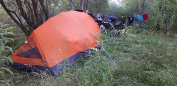 Nel frattempo avevo acquistato 3 pomodori, per dire basta al solito mais in scatola!!! Una scelta sbagliata, anche se i pomodori erano dentro un frigo, li ho lavati e tolta la leggera patina. Appena finiti di mangiare, immediatamente ho avvertito fitte all’intestino con relatisce scariche di diarrea, fino a questa mattina. Avevo programmato una tappa breve fino a Naryn. Comunque la situazione è molto migliorata, ho anche con me tante medicine a riguardo. Non vi ho detto nulla dei kirghisi ma continuano a comportarsi davvero in modo speciale. Ieri mentre ero in tenda si è fermata un’auto; ho pensato: adesso mi dice di andare via. Invece si è avvicinato con un sorriso, anche io sono uscito fuori dalla tendina e ci siamo stretti la mano. Poi, porgendo le mani sulla guancia come per dormire, mi ha fatto capire di andare a casa sua. Avevo già tutto sistemato. Domani inizia l’ultima settimana, tornerò a pedalare verso Nord. Ci sono ancora un paio di valichi sopra i 3.000 metri da superare».
