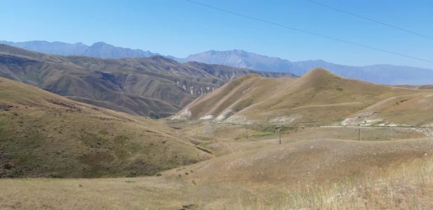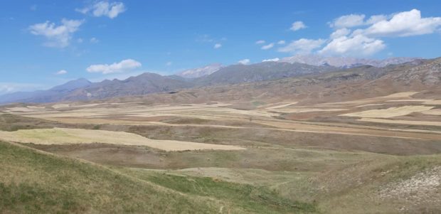 Non appena mi hanno visto con il braccio alto, e la bottiglia in mano vuota, si sono fermati immediatamente, rifornendomi con altri 2 litri. La vera costante, oltre all’impegnativo percorso è il caldo; in pianura, per modo di dire, perché l’altitudine minima raggiunta è di 800 metri, che in alta montagna. Ieri invece altro importante valico superato che collega Kazarman a Naryn. 13 km in completa “solitudine” con un dislivello di ben 1.070 metri!!! 3 ore e venti per terminare la salita. Decine e decine di tornanti, su alcuni sono dovuto scendere dalla bici e spingere a mano il “carrettino”. Nella discesa arrivato ad un villaggio, ho incontrato due ciclo turisti francesi. Mi sono fermato e il viso della ragazza era molto provato. Ho dato qualche info ai due e ho notato il ginocchio della ragazza molto gonfio. A quel punto ho fatto notare che c’erano da fare 1.200 metri di dislivello. Il ragazzo molto supponente l’ha invitata a rimettersi in sella, esclamando allez allez. A quel punto prima di andare via le ho lasciato più della metà dei miei antiffiammatori e un protettore per lo stomaco. In serata ho trovato un posto per dormire nelle immediate vicinanze di un campo coltivato.