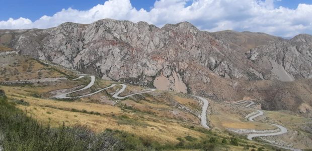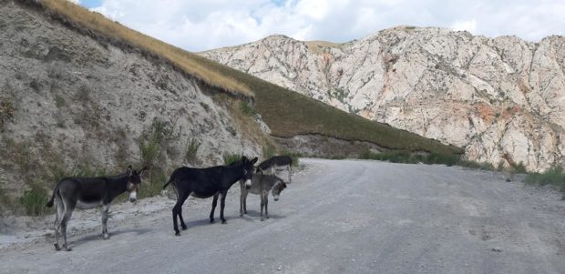 «Quarto aggiornamento, quattordicesimo giorno. Percorsi 1.305 km; Disl + 16.799 m; l’ultima volta che ci siamo sentiti ero a Osh, la seconda città più grande del Kirghizistan (250.000 abitanti) ubicata a Sud. Ho dovuto ripercorrere la stessa strada dell’andata, altrimenti avrei dovuto deviare per la Cina (impossibile!!). Mentre pedalavo sotto un sole cocente, c’era una pattuglia della polizia con l’autovelox operativo, ce ne sono molti e fioccano le multe senza essere avvisati dal cartello.
