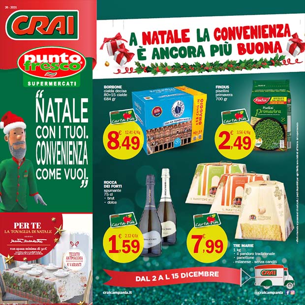 PUNTO FRESCO vi ricorda che a Natale la Convenienza è ancora più buona! Il nuovo volantino dei “supermercati di casa nostra”, integralmente riportato di seguito, è, come sempre, ricchissimo di imperdibili offerte. La nuova Promozione resterà in vigore fino al prossimo 15 Dicembre 2021 in tutti i punti vendita della catena.