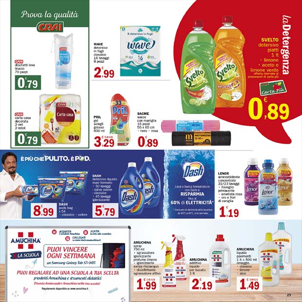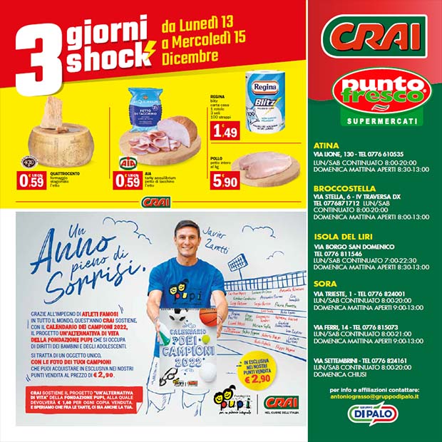 Vi ricordiamo, come sempre, di dare un’occhiata anche ai prezzi costantemente bassi sui prodotti a marchio CRAI, proposti grazie alla partnership con l’omonimo grande gruppo nazionale, e all’ultima pagina dedicata ai tre giorni shock, questa volta in programma dal 13 al 15 Novembre 2021! Di seguito le venti pagine del nuovo volantino.