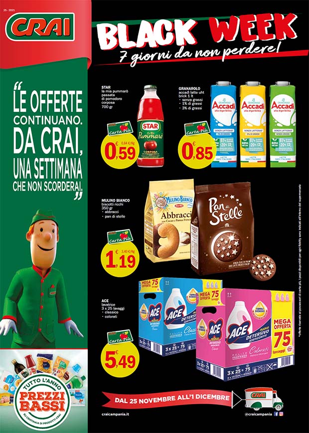 Vi ricordiamo, come sempre, di dare un’occhiata anche ai prezzi costantemente bassi sui prodotti a marchio CRAI, proposti grazie alla partnership con l’omonimo grande gruppo nazionale.