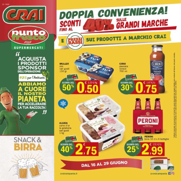 La nuova Promozione resterà in vigore fino al prossimo 29 Giugno 2022, naturalmente in tutti i punti vendita della catena. Vi ricordiamo, come sempre, di dare un’occhiata anche ai prezzi costantemente bassi sui tanti prodotti a marchio CRAI, proposti grazie alla partnership con l’omonimo grande gruppo nazionale.
