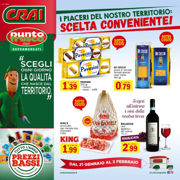 Punto Fresco presenta: “I piaceri del nostro territorio, scelta conveniente!”. Nella nuova promozione, valida fino al 3 Febbraio, tanti prodotti a prezzi decisamente convenienti. Inoltre, grazie alla partnership con il Gruppo CRAI, i supermercati di casa nostra propongono altrettante opportunità caratterizzate da prezzi bassi tutto l’anno.