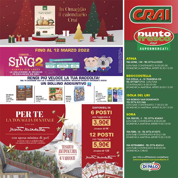 La nuova Promozione resterà in vigore fino al prossimo 27 Dicembre 2021 in tutti i punti vendita della catena. Vi ricordiamo, come sempre, di dare un’occhiata anche ai prezzi costantemente bassi sui prodotti a marchio CRAI, proposti grazie alla partnership con l’omonimo grande gruppo nazionale.
