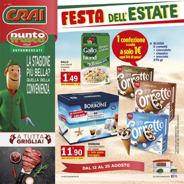 Punto Fresco vi invita alla sua “FESTA DELL’ESTATE”. Fino al 25 Agosto, il consueto volantino dei “supermercati di casa nostra” propone tantissime opportunità da cogliere al volo.