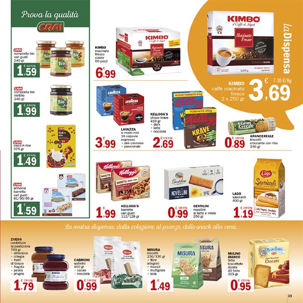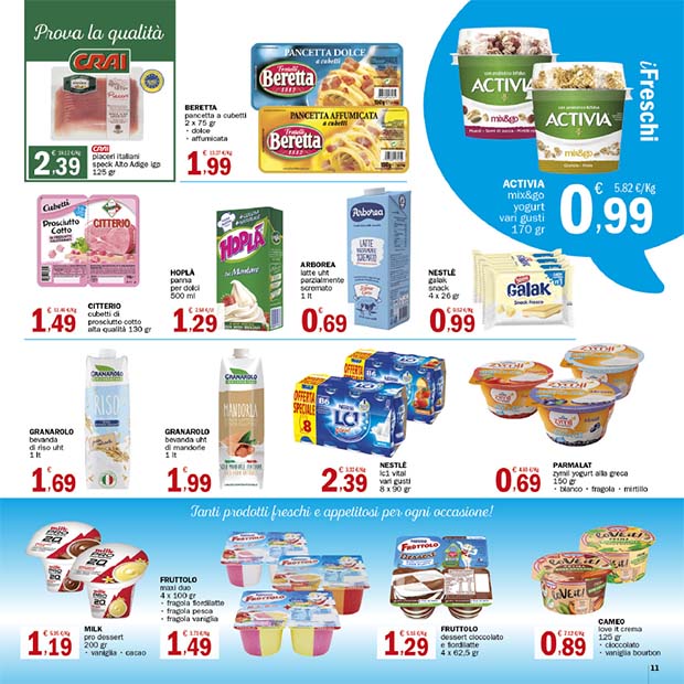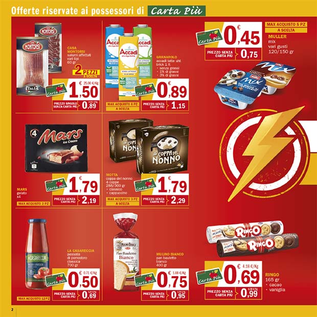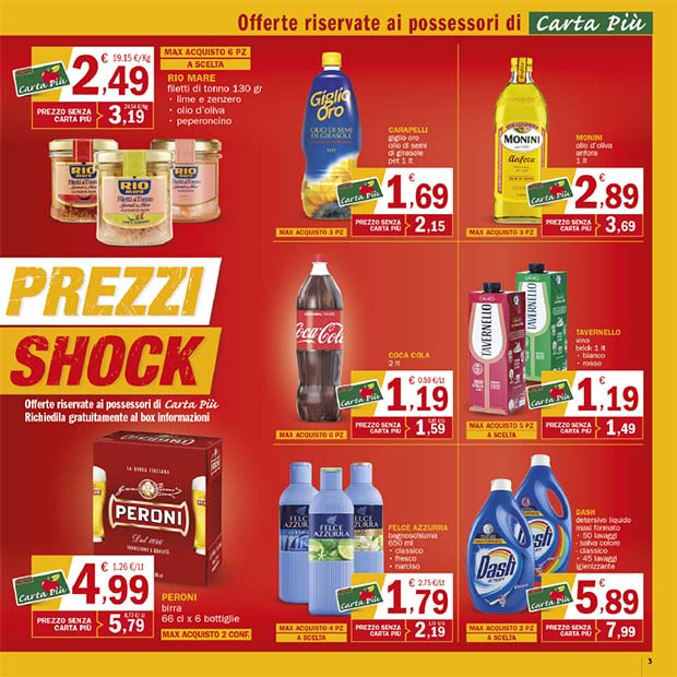 Occhio ai prezzi shock riservati ai possessori della “Carta Più”, che potete richiedere presso i box informativi di tutti i punti vendita della catena. Non dimenticate, inoltre, di dare uno sguardo anche ai prezzi costantemente bassi sui prodotti a marchio CRAI, proposti grazie alla partnership con l’omonimo grande gruppo nazionale.