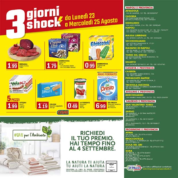 In ultimo, ricordate di prender nota delle offerte disponibili nei tre giorni shock, questa volta in programma dal 23 al 25 Agosto! Di seguito le venti pagine del nuovo volantino.
