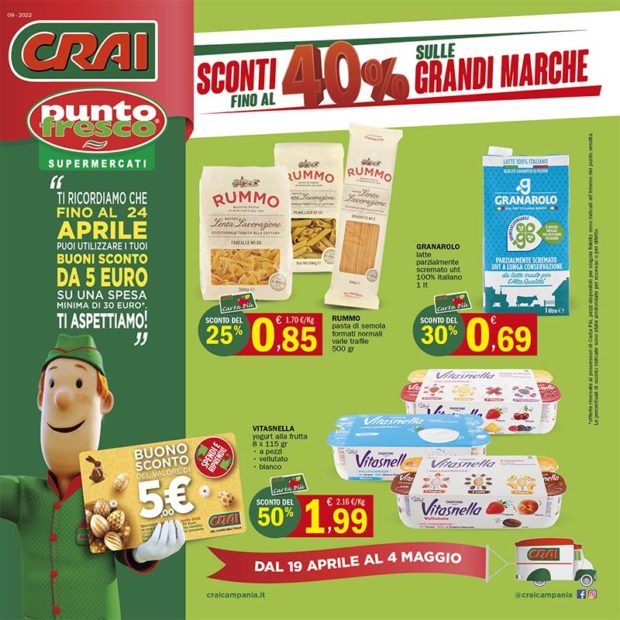 La nuova Promozione resterà in vigore fino al prossimo 04 Maggio 2022, naturalmente in tutti i punti vendita della catena. Vi ricordiamo, come sempre, di dare un’occhiata anche ai prezzi costantemente bassi sui tanti prodotti a marchio CRAI, proposti grazie alla partnership con l’omonimo grande gruppo nazionale.