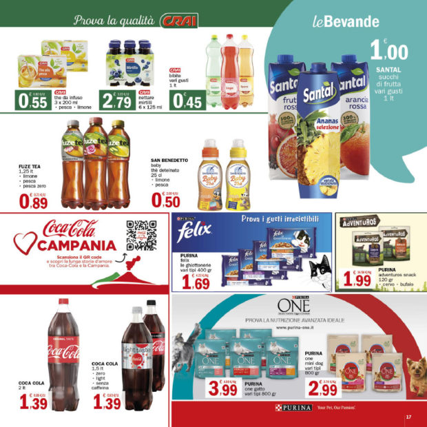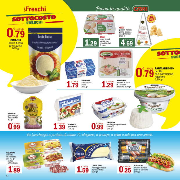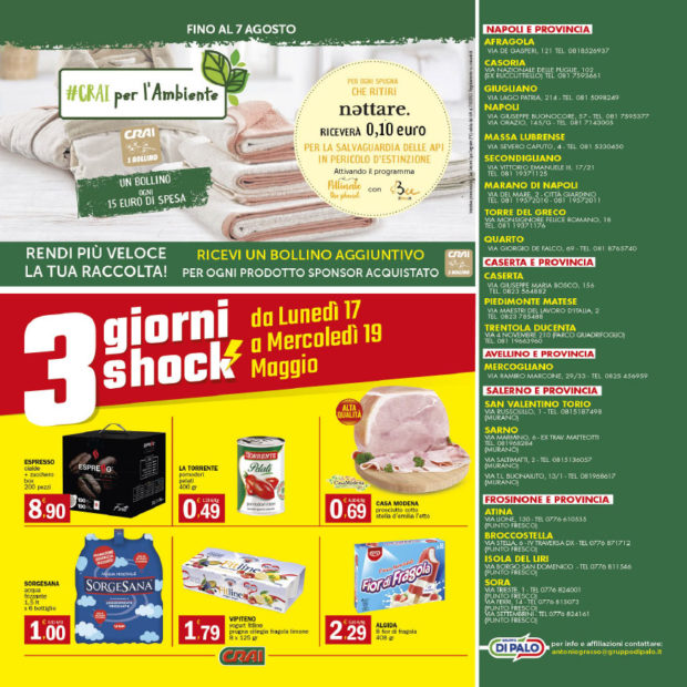 Punto Fresco: Sottocosto freschi e tanti sconti sulle grandi marche! Il nuovo volantino dei supermercati di casa nostra, integralmente riportato di seguito, è sempre stracolmo di formidabili offerte. Vi ricordiamo, come sempre, di dare un’occhiata anche ai prezzi costantemente bassi sui prodotti a marchio CRAI, proposti grazie alla partnership con l’omonimo grande gruppo nazionale, e all’ultima pagina dedicata ai tre giorni shock, questa volta in programma dal 17 al 19 Maggio! Di seguito le venti pagine del nuovo volantino.
