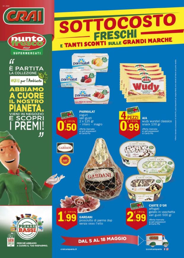 La nuova Promozione resterà in vigore fino al prossimo 18 Maggio 2022, naturalmente in tutti i punti vendita della catena. Vi ricordiamo, come sempre, di dare un’occhiata anche ai prezzi costantemente bassi sui tanti prodotti a marchio CRAI, proposti grazie alla partnership con l’omonimo grande gruppo nazionale.