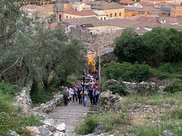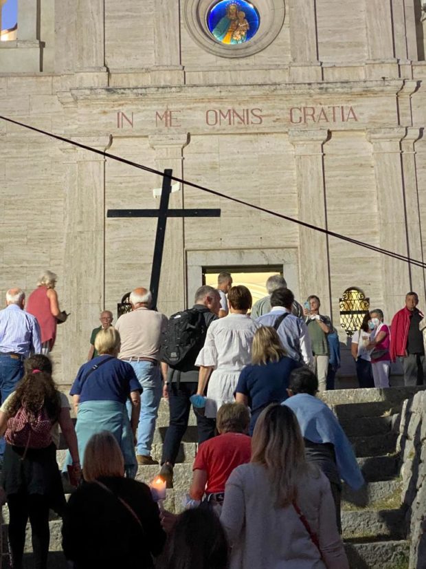 Il percorso lo conoscete: si parte da Piazza Indipendenza, si salgono gli oltre quattrocento scalini che conducono allo storico Santuario e una volta arrivati ci si raduna nello spazio adiacente la chiesa stessa.