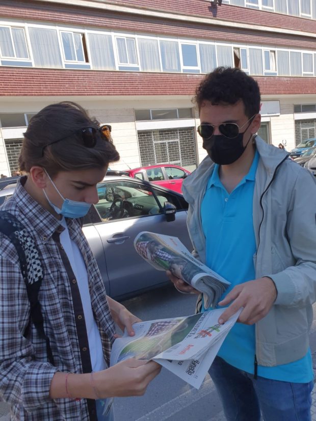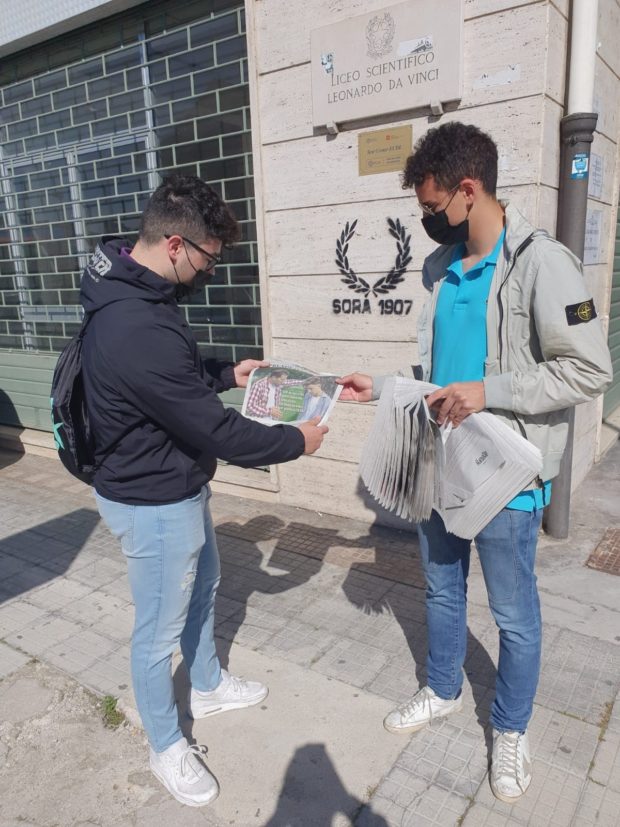 Nella mattinata di Venerdì 7 Maggio il coordinamento locale di Sora di CulturaIdentità, l’associazione fondata da Edoardo Sylos Labini, in collaborazione con Gioventù Nazionale, ha distribuito ai ragazzi del Liceo Scientifico “Leonardo Da Vinci” di Sora copie gratuite del nuovo numero dell’omonimo mensile, con una irriverente copertina del re della satira Federico Palmaroli alias Osho, interamente dedicato ai giovani.