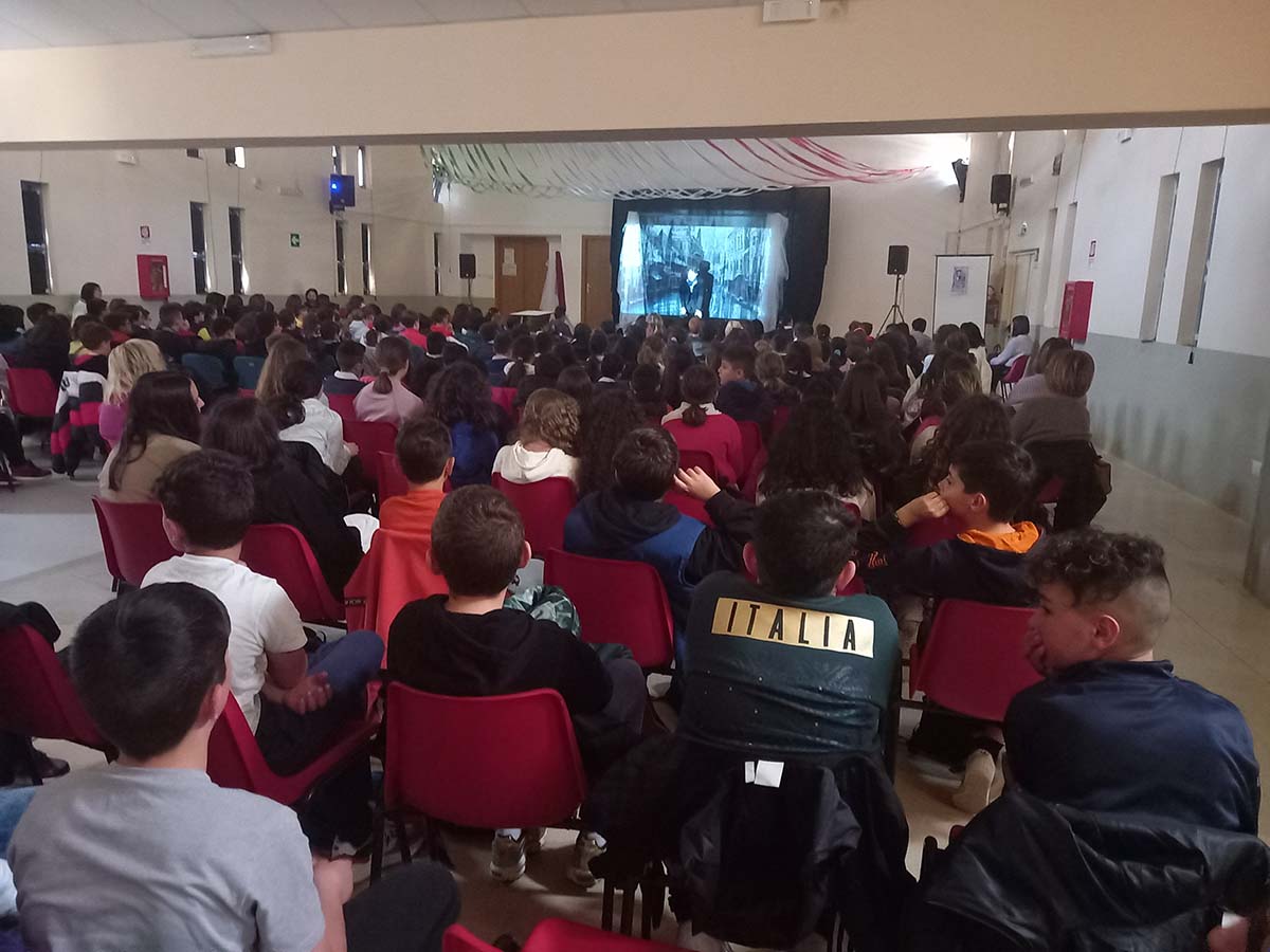 A fine spettacolo si è aperto un dibattito e gli organizzatori, insieme all’attore, hanno incontrato i ragazzi rispondendo alle loro numerose domande. Ne è nato uno scambio emozionale sui temi della solidarietà con spunti di riflessione importanti su come migliorarsi con azioni concrete e modificare gli atteggiamenti negativi, nella consapevolezza di avere scuole, teatro, acqua calda, cibo e che bambini distanti solo qualche migliaio di chilometri da noi, oggi non hanno più, per i disastri generati dai conflitti bellici.