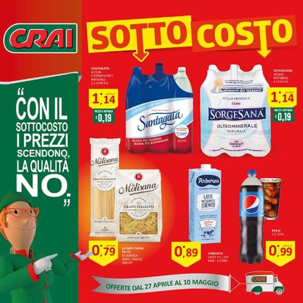 Torna il SOTTO COSTO CRAI. Dal 27 Aprile al 10 Maggio 2023 numerose opportunità per riempire il carrello della spesa a fronte di una cifra sostenibile.