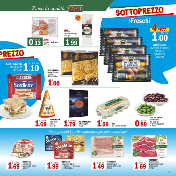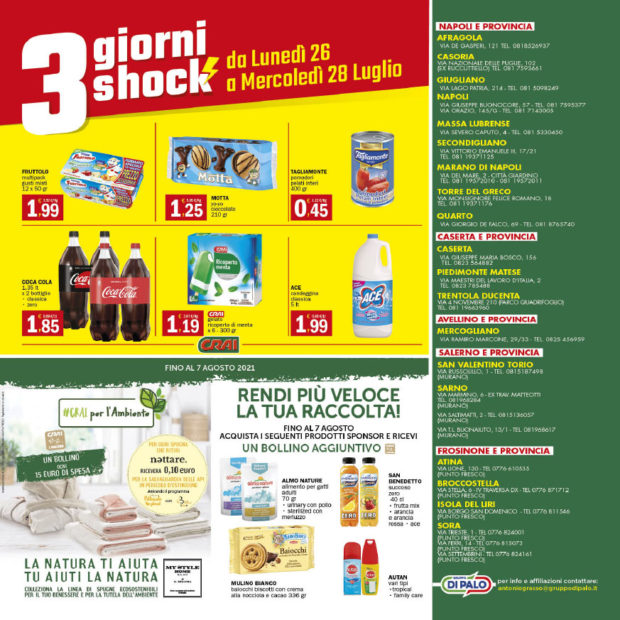 Vi ricordiamo, come sempre, di dare un’occhiata anche ai prezzi costantemente bassi sui prodotti a marchio CRAI, proposti grazie alla partnership con l’omonimo grande gruppo nazionale, e all’ultima pagina dedicata ai tre giorni shock, questa volta in programma dal 26 al 28 Luglio! Di seguito le venti pagine del nuovo volantino.