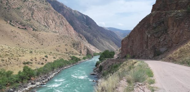 «L’avvicinamento prima delle montagne – ha spiegato – è stato monotono e pericoloso per la mia incolumità perché ho dovuto percorrere per circa 60 km fino a Kara-Balta una strada a scorrimento veloce. Da Sosnovka il “panorama” è notevolmente cambiato; è iniziata una lunghissima salita con importanti pendenze fino all’Ashu Pass a circa 3200 metri di altitudine. Sul valico – ha proseguito – dovevo superare un tunnel di circa 3 km, ho chiesto (per modo di dire) a un poliziotto addetto, mi ha fatto intendere che potevo percorrerlo appena il semaforo fosse diventato verde. Non mi sono per niente fidato, visto come si presentava la galleria. Al primo camion che stava arrivando, ho chiesto un passaggio, subito accordato. Quel tunnel è una camera a gas!! Mi sono buttato in discesa verso la Suusamyr Valley – ha continuato Lucarelli – ed ho raggiunto Suusamyr percorrendo una strada sterrata con un caldo infernale (39°). Per fortuna scorreva un fiume dentro il quale mi sono lavato e accampato per la notte. Ora sono le 13,30 ora locale mi trovo a Mink-Kush, pronto a riprendere il viaggio. Ho con me un Sim locale, nonostante tutto non sempre ho il segnale. Un abbraccio a tutti».